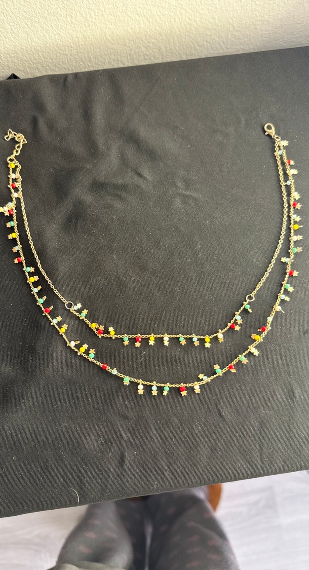 Renkli boncuklarla süslenmiş uzun bohem kadın kolyesi, günlük kullanıma uygun hippie ve retro tarzda tasarlanmıştır.