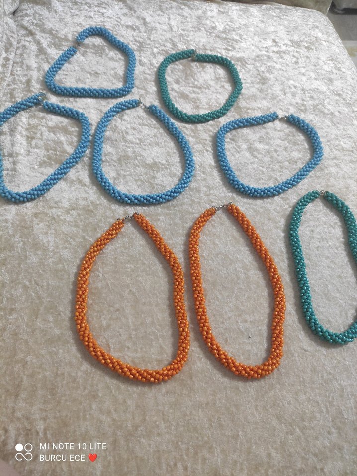 Renkli boncuklarla işlenmiş uzun boyda bohem tarzda kolyeler, günlük kullanıma uygundur.