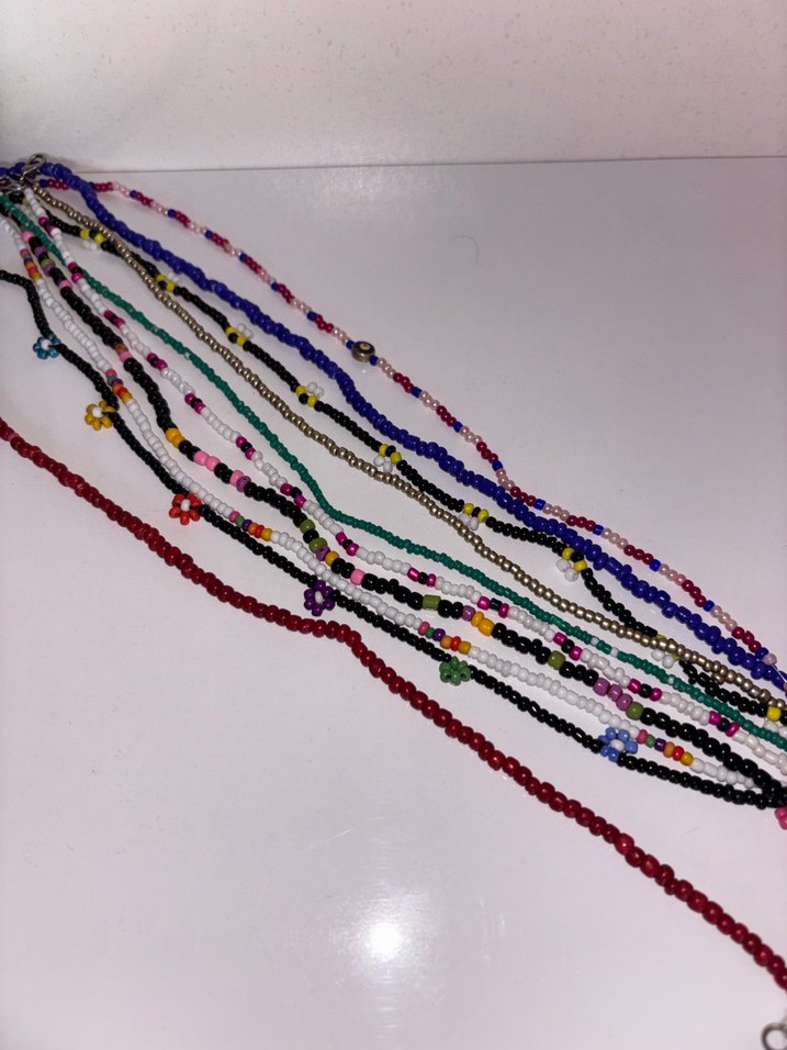 Uzun, renkli boncuklardan oluşan ve nakış desenli bohem ve retro tarzda kolyeler. Günlük kullanıma uygun. Bazıları kendi yapımımdır, ister boncuklarından faydalanın ister takarak kullanın. Tek fiyat 30 tl, hepsi 250 tl dir.