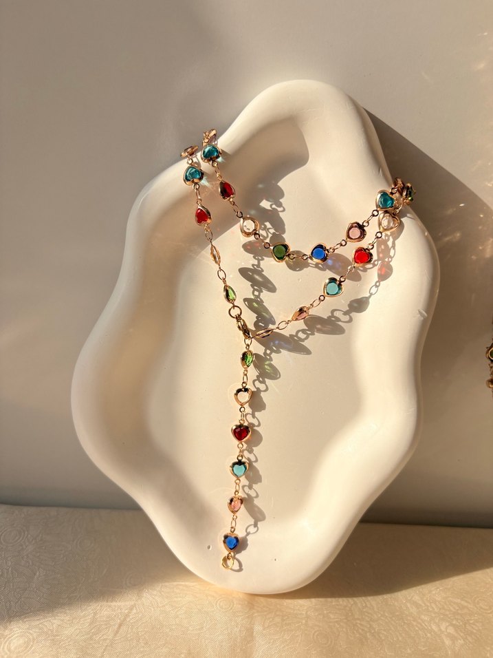 Renkli Kalpli Boncuklu Uzun Y Kolye