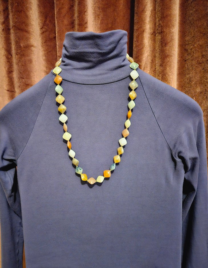Pastel renkli boncuklardan oluşan vintage 70cm uzunlukta kolye. Günlük kullanıma uygun,