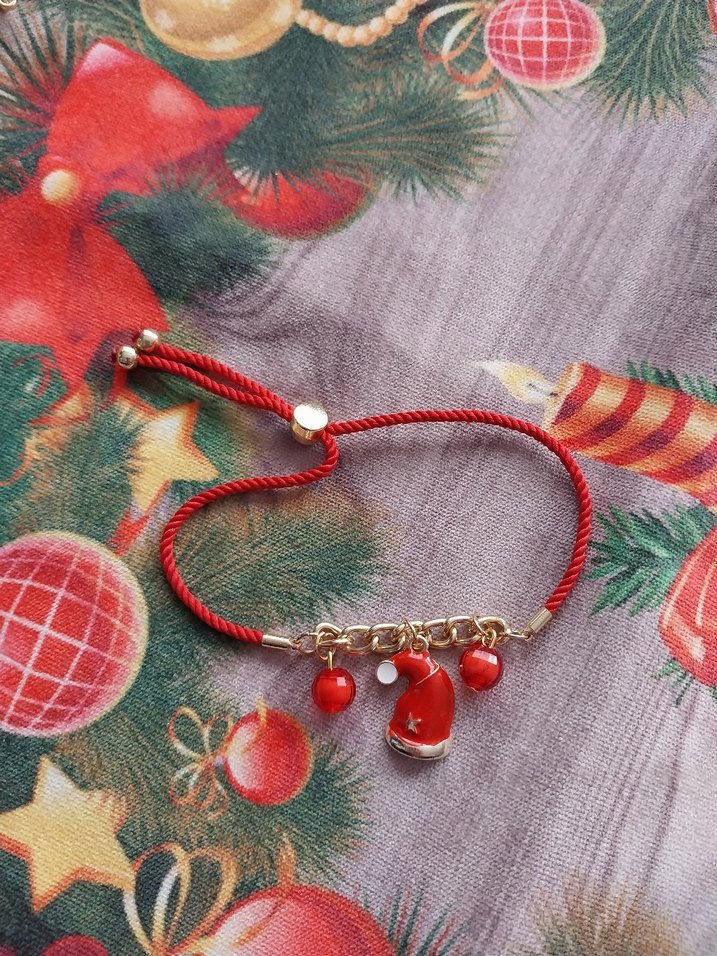 Kırmızı boncuklar ve kırmızı ipiyle sarı zincir detaylarıyla renkli, yılbaşı kadın bileklik. Günlük kullanıma uygun.