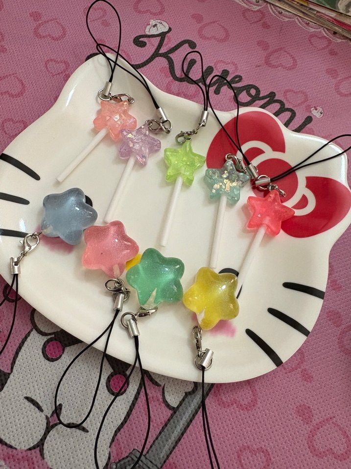 Renkli, boncuklu yıldız şeklinde charmlar, telefon veya aksesuarlar için eğlenceli bir dokunuş sağlar. Parlak ve canlı renklere sahiptir.