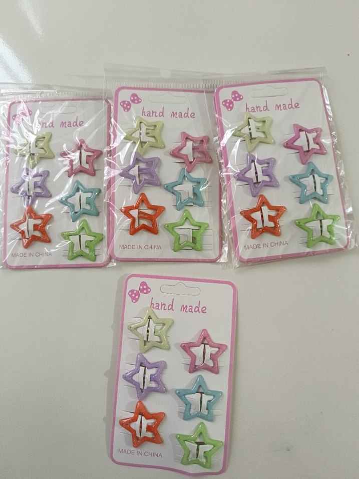 Renkli boncuk detaylı, yıldız şeklinde el yapımı saç tokaları seti.