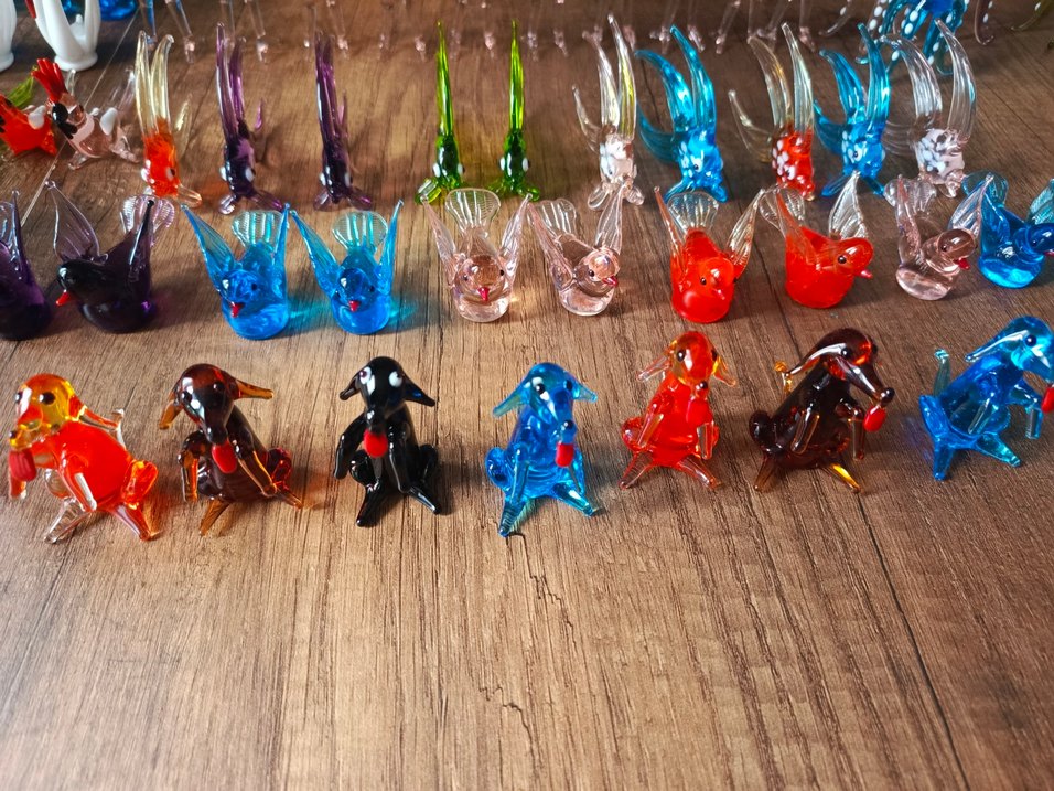 el emeği ceşitli canlı renklerde ve ince detaylara sahip renkli cam hayvan figürle modellerimiz hazir