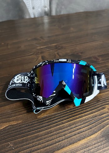Renkli Camlı Beyaz Bağcıklı Kayak Gözlüğü