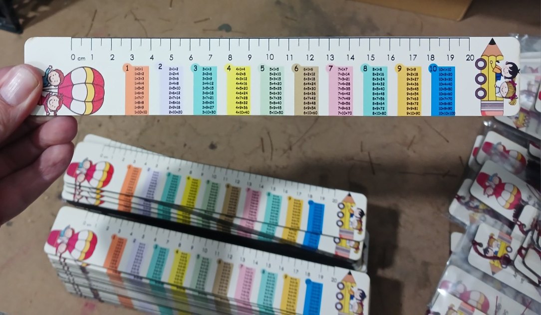 2'den 15'e kadar çarpım tablolarını içeren, canlı renklerle bölümlendirilmiş ve kolay okunabilir sayılarla tasarlanmış renkli cetvel. çoklu alımlarda fiyat değişiyor