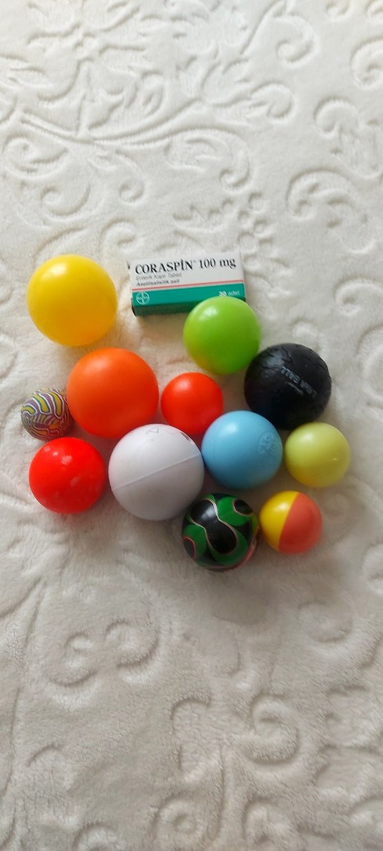Farklı boyutlarda ve çeşitli renklerde toplar Toplar canlı renkler ve desenlere sahip. ⚽
