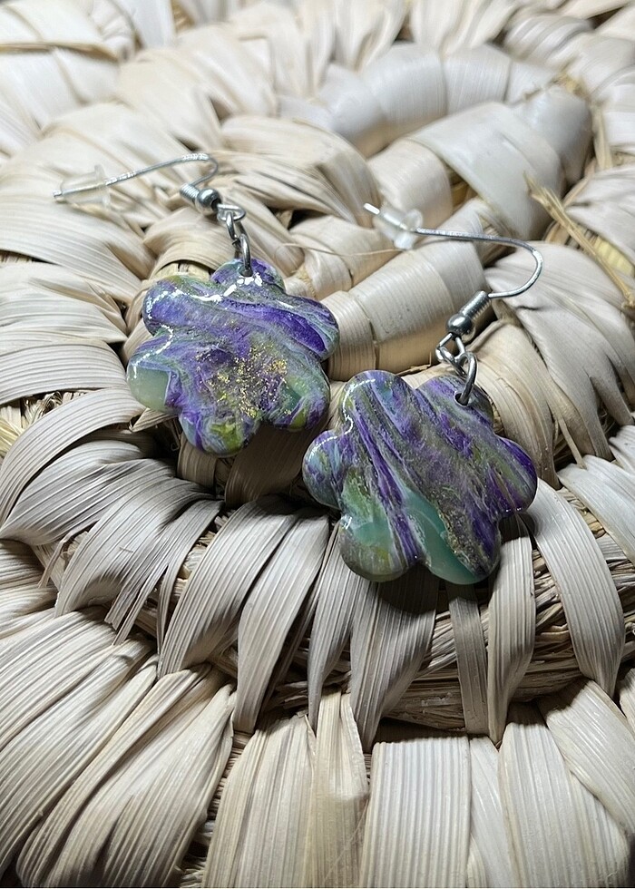 Polimer kil ve epoksi malzemeden yapilmistir. El yapimi ve essizdir. Kupe kancasi nikel kaplamadir.
