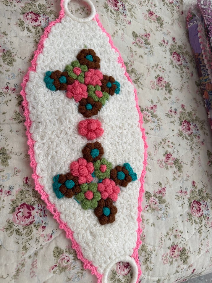 Çiçek desenli renkli banyo süngeri, kolay tutuş için halkalar içerir. Yumuşak ve dekoratiftir.