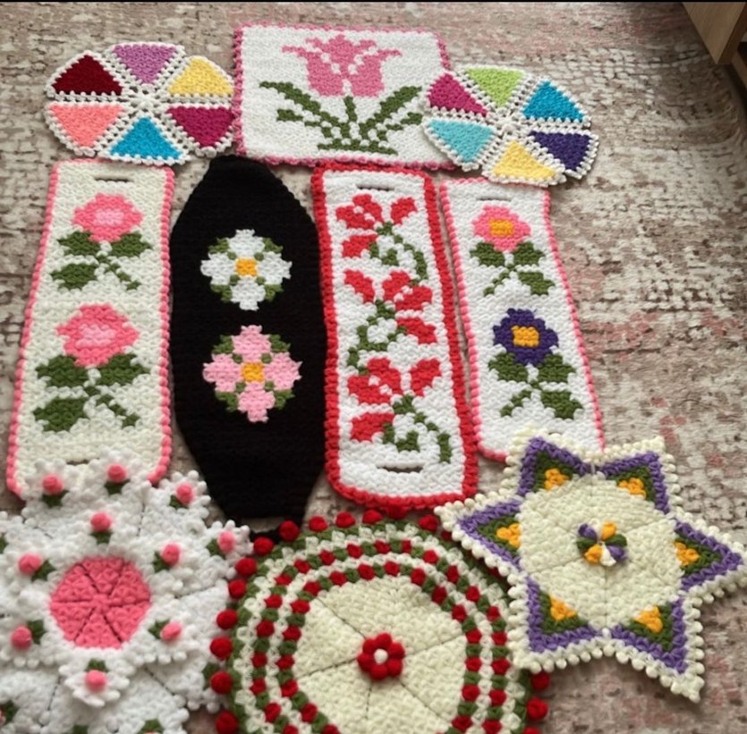 Çeşitli şekil ve canlı renklerde, farklı çiçek desenlerine sahip renkli banyo süngerleri. Yumuşak ve dekoratif yapıda.Lifler