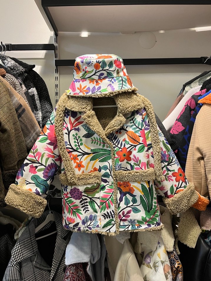 Renkli çiçek desenli çocuk mont şapka #çiçeklimont #tasarımmont #cocukmont #montşapka