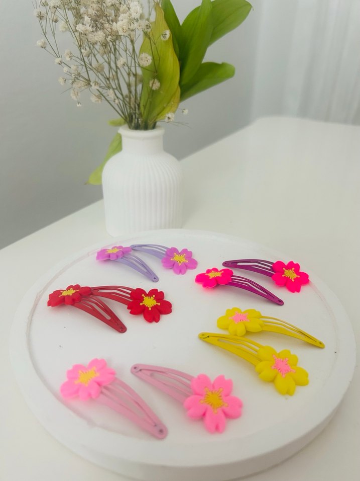 Bohem tarzda renkli, elastik yapılı çiçek desenli çocuk saç tokası seti. Canlı renk seçenekleri içerir. Hangi rengi istersen mesaj at Bir çift adet fiyatıdır