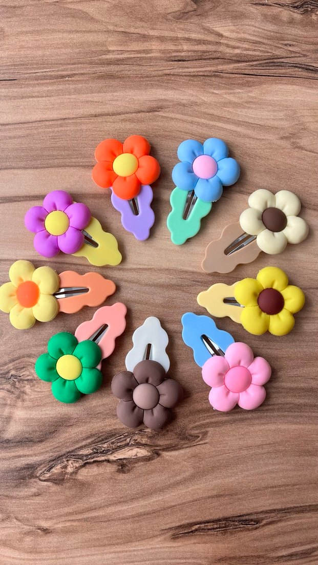 Renkli Çiçek Desenli Elastik Çocuk Toka Seti