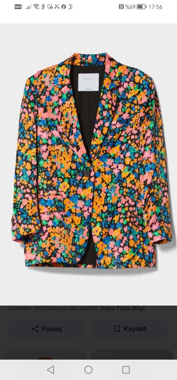 Ölçüleri görselde Renkli çiçek desenli, düğmeli, uzun kollu kadın blazer ceket. Normal boyda, regular fit ve viskon kumaştan yapılmıştır. Akar viskon kumaştan ütü istemez İçi astarlı Yanları kapaklı cepli Arkası yırtmaçlı Hiç kullanılmadı yeni dir problemsiz