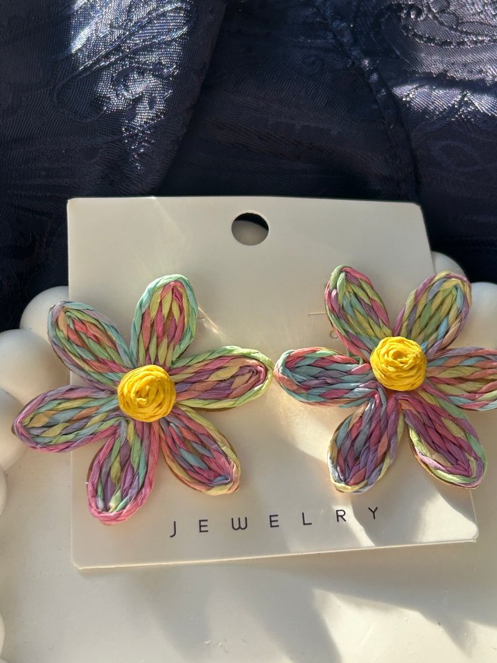 Renkli çiçek deseniyle kısa, elastik yapıda bohem ve vintage tarzlara uygun küpelerdir. Parti kıyafetlerine neşeli bir dokunuş katar.