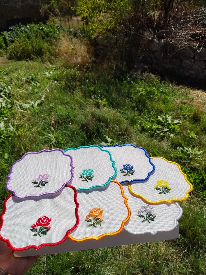Renkli Çiçek Desenli Nakışlı Peçeteler