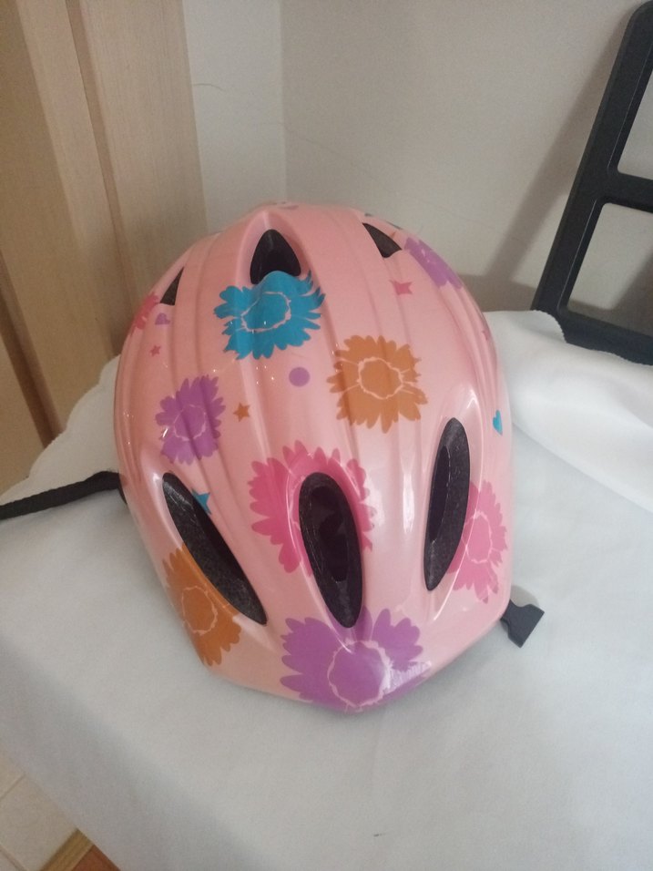 Pembe renkli bisiklet kaskı, renkli çiçek desenleri ve tokalı yapısıyla bohem ve retro tarzı yansıtıyor.kafa ölçüsüne gore ayarlanabilir.