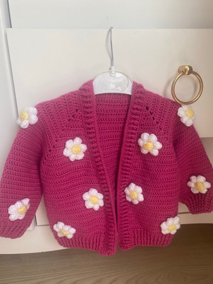 Renkli Çiçek Desenli Pembe Kız Hırkası