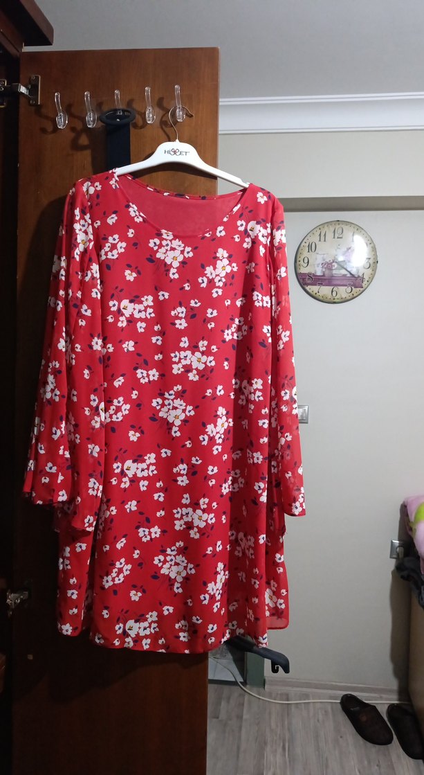 Renkli çiçek desenli, uzun kollu, düğmeli bohem tunik. Salaş kesimi ve bisiklet yaka detayli.ozel günlerde giyilir şifon