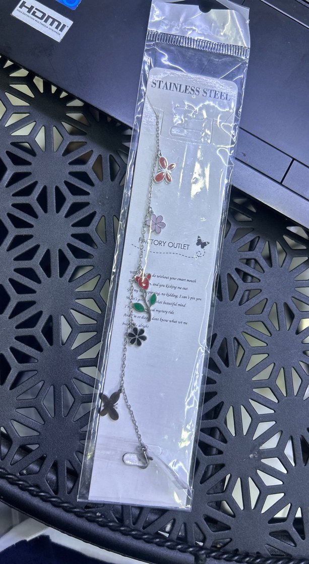 Paslanmaz çelik zincir üzerinde renkli çiçek detayları bulunan, günlük kullanıma uygun kadın el zinciri.