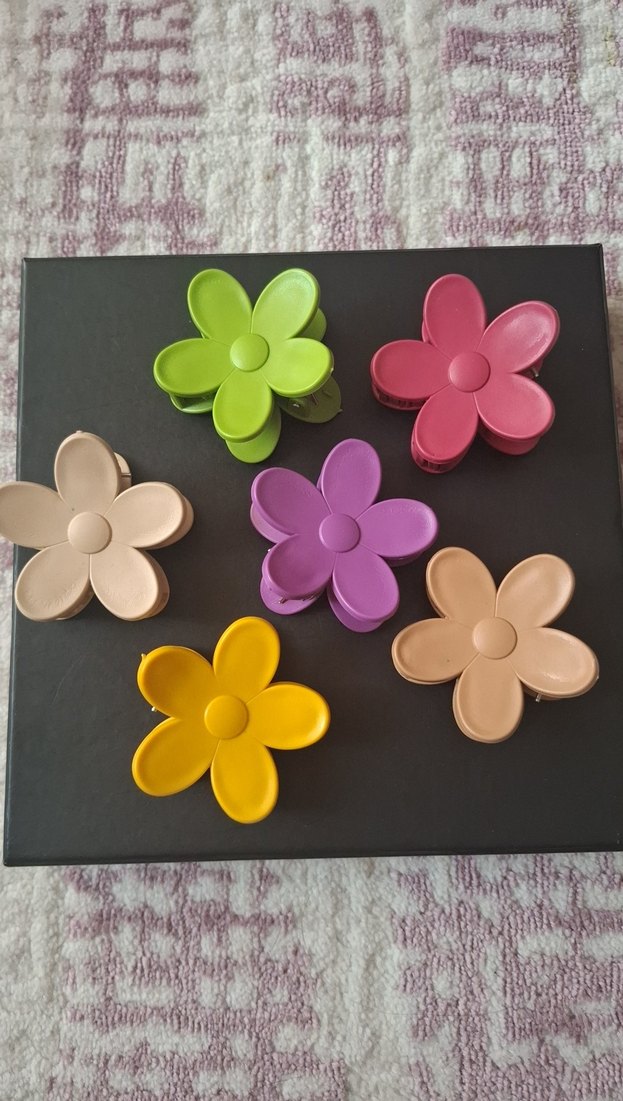 Minimalist ve sade stillere uygun, elastik özellikli renkli plastik çiçek şeklinde saç tokaları mandallıdır 6 tanesi 130 tl dir