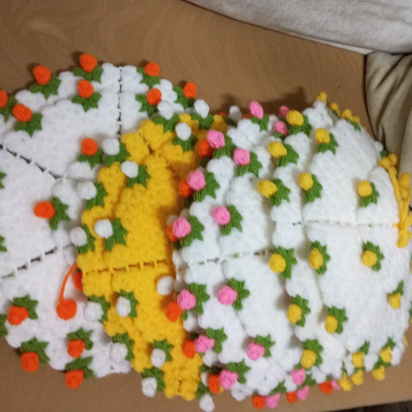 Yumuşak malzemeden, küçük çiçek desenleriyle süslenmiş renkli banyo lifleri
