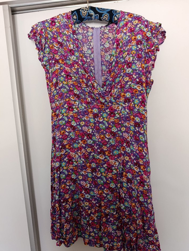 Hiç kullanilmadi.Renkli çiçek desenli bohem midi elbise, V yaka ve drapeli detaylara sahiptir. Kolsuz ve yumuşak tekstil kumaştan üretilmiştir, günlük kullanım için uygundur. bedeni xl ama dar kalip ölçüleri fotoğrafladim