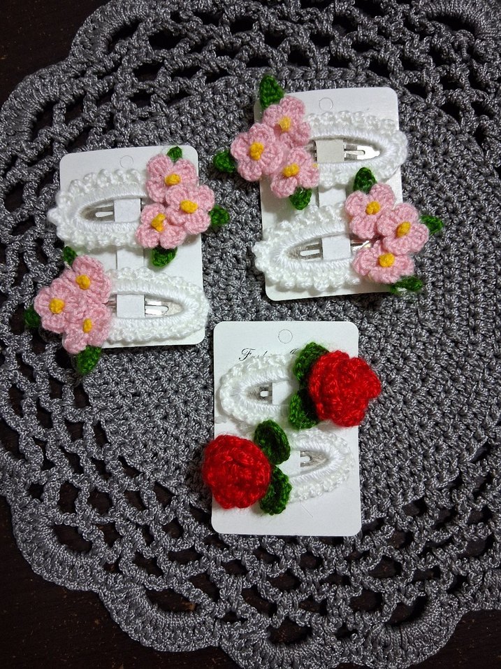 Dantel işlemeli, pembe ve kırmızı çiçek detaylı renkli çocuk saç tokası seti. adet 35