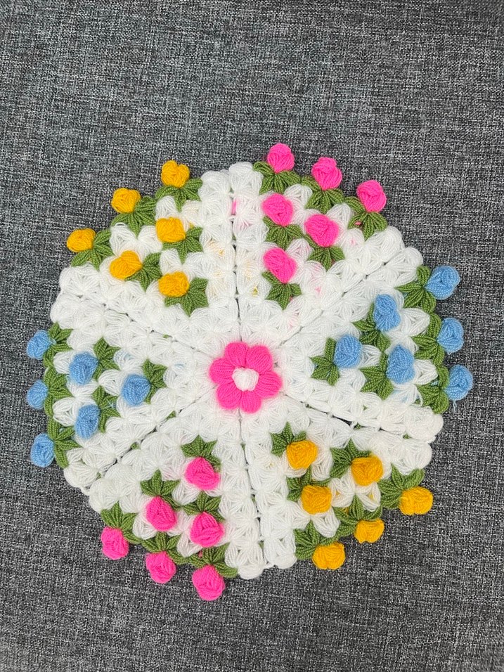 Renkli Çiçekli El Yapımı Dekoratif Örtü