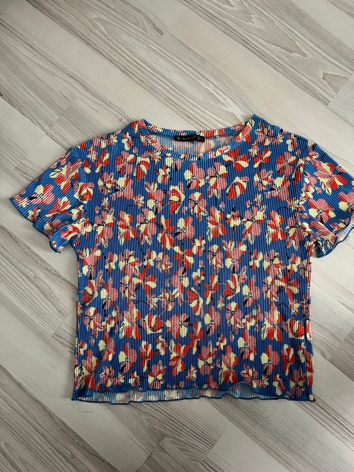 Renkli Çiçekli Kadın Kısa Kollu Tişört