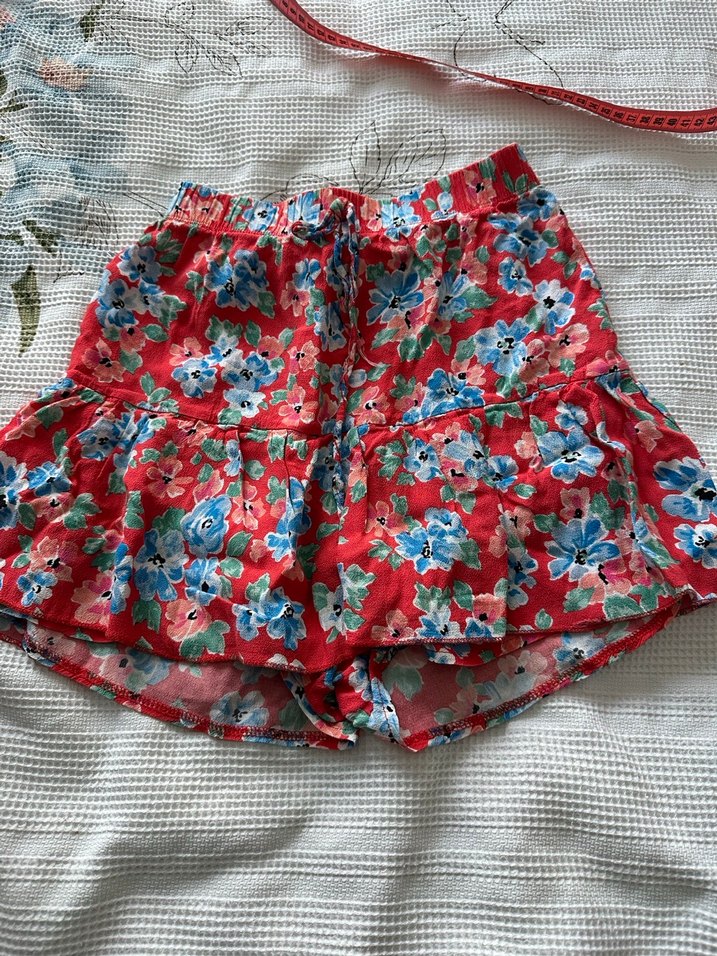 Sentetik kumaştan, renkli çiçekli ve batik desenli, volan detaylı, bol kesim mini etek. Açık hava bohem tarzı için uygun.