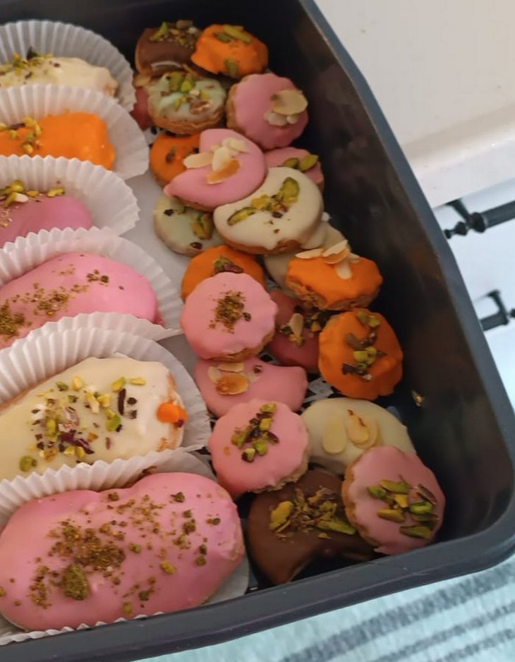 Günlük Taze yapılır Tereyağli Fındıklı Gofret kurabiye renkliler gıda boyası değil çikolatadir portakal.limon.cilek.ruby çikolata.beyaz.sütlü.bitter çikolatalardir tanesi 15₺