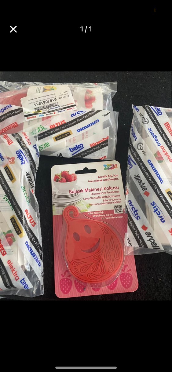 elastik askılı bulaşık makinesi ferahlatıcısı. Çilek kokusuyla bulaşık makinenizi taze tutar. Evde ve araçtada kullanabilir stokta sınır yoktur tekli adeti 70 tldir toplu için yazınız