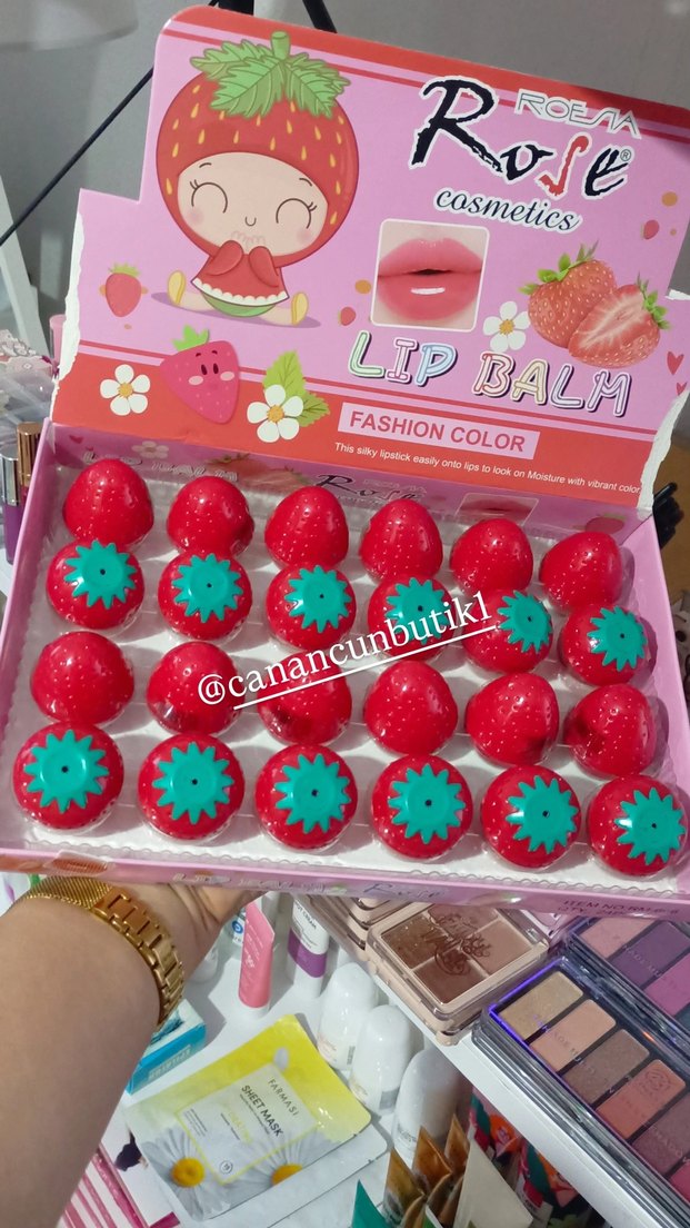 Renkli kırmızı tonunda, çilek şeklinde dudak parlatıcısı.lip glos Dudaklara nem ve canlı renk sağlar.