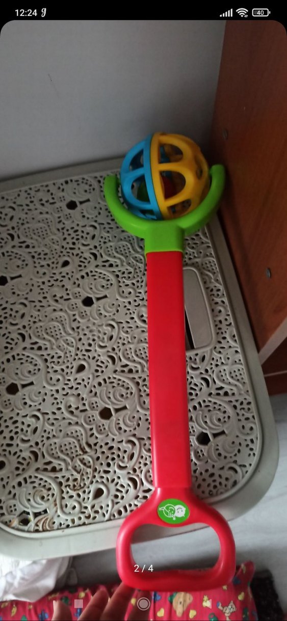 Uzun saplı, çok renkli top içeren renkli e çıngırak sürtme oyuncağı