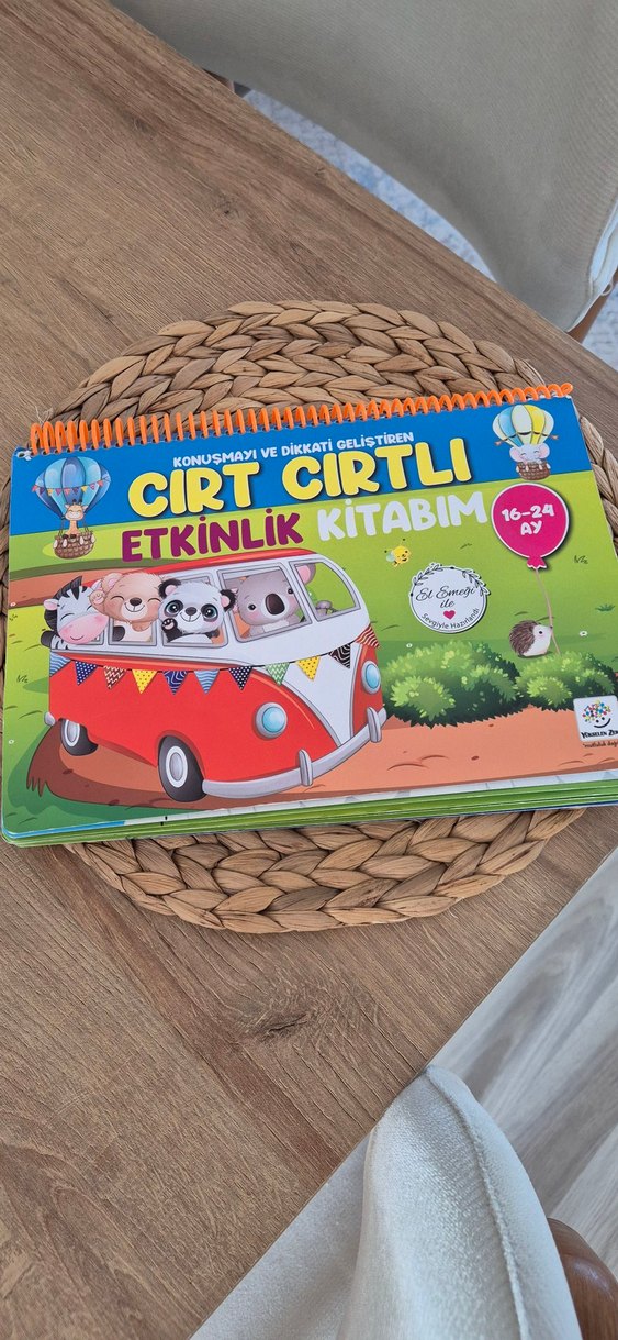16-24 ay çocuklar için konuşma ve dikkati geliştiren renkli cırt cırtlı etkinlik kitabı. Sorunu yok sayfalari ve cırtları eksiksiz
