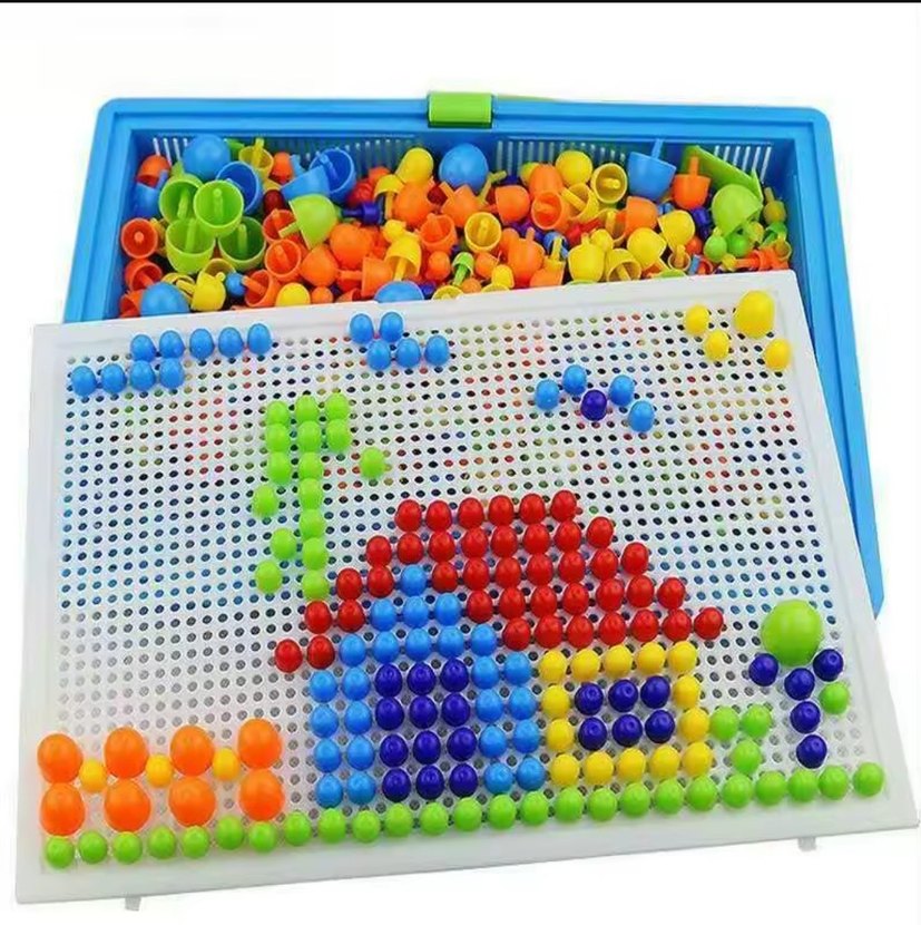 Çok renkli çivilerle yaratıcı tasarımlar yapmaya olanak tanıyan eğitici oyuncak seti. İnce motor becerilerini ve yaratıcılığı destekler.