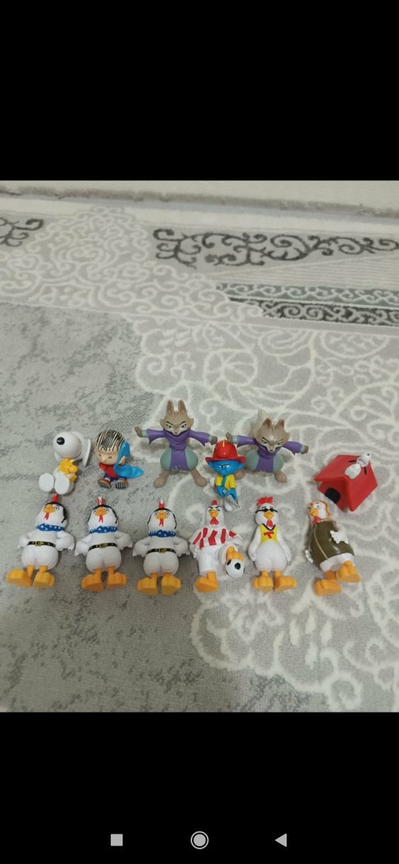 Farklı çizgi film karakterlerinden oluşan, renkli ve detaylı tasarımlı aksiyon figürleri seti.