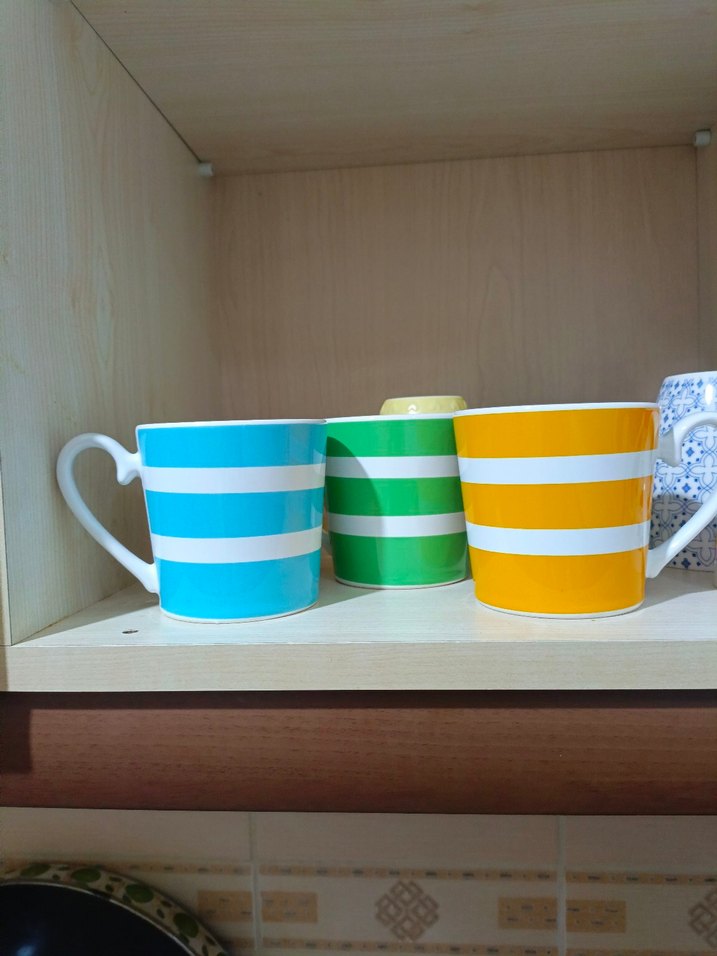 Renkli Çizgili 3'lü Seramik Kupa Seti
