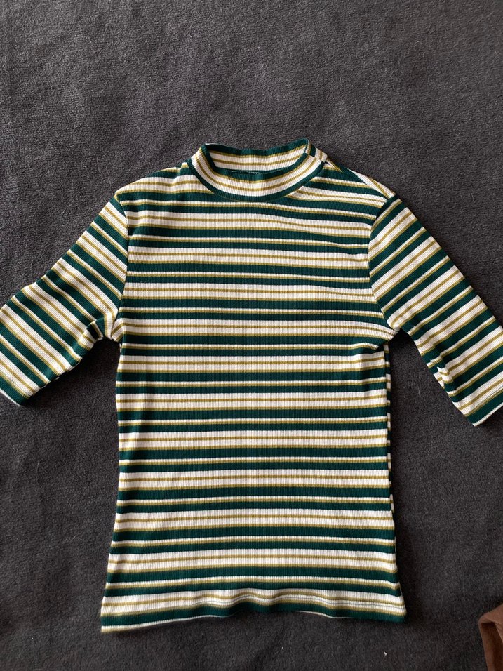 Balıkçı yaka, uzun kollu, renkli çizgili triko. Sentetik kumaştan, uygun kesimli, sokak tarzı için ideal.