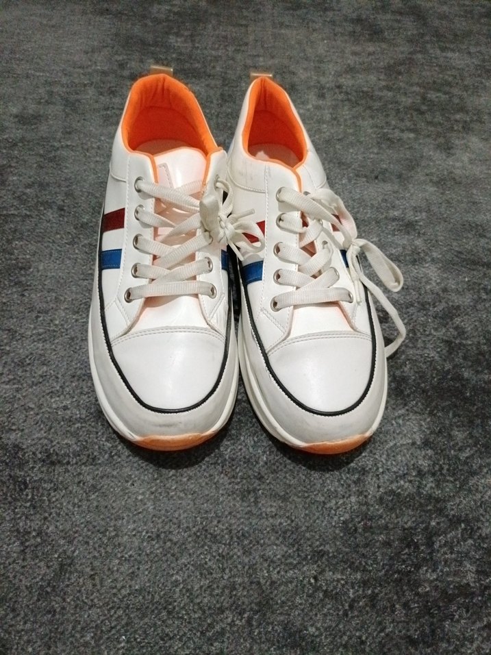 Renkli Çizgili Beyaz Kadın Spor Ayakkabı