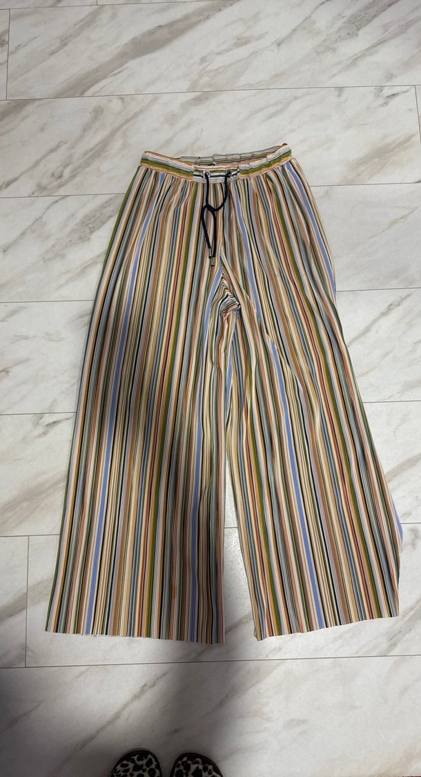 Kadınlar için uzun, bol kesim, pileli ve pastel çok renkli çizgili pantolon, günlük ve bohem tarz için uygundur.