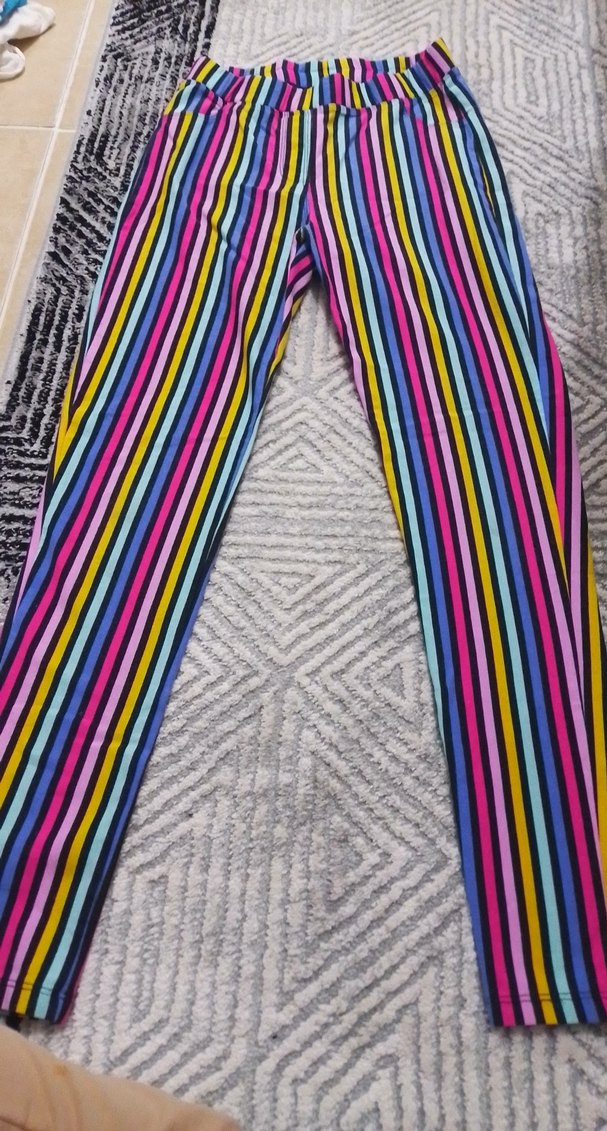 Renkli Çizgili Kadın Kumaş tayt