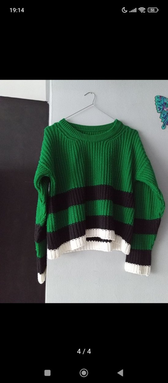 Renkli çizgili, rahat kesim ve yuvarlak yakalı triko kazak. Yumuşak örme kumaştan, uzun kollu ve normal boyda, günlük kullanım için uygundur. örme kazak