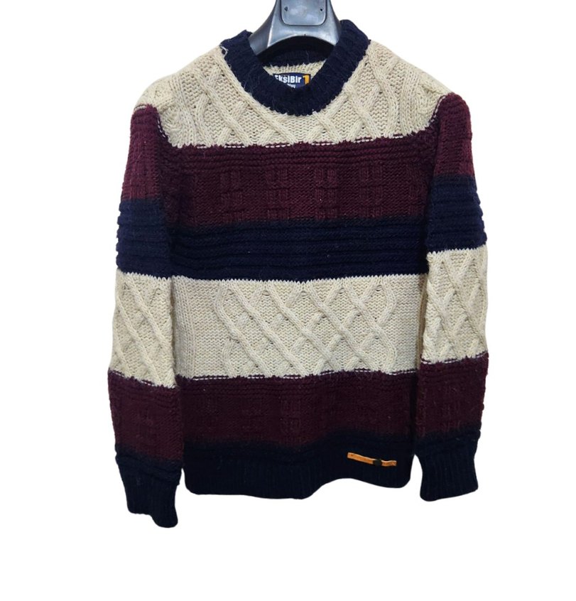 Bu erkek kazak örme dokusu ve bordo, lacivert ve krem renkli geniş çizgileriyle dikkat çekiyor. Bisiklet yaka ve uzun kollu, günlük kullanıma uygun normal kesim ve uzunluktadır. Trendy casual sokak stili için ideal. 67×53