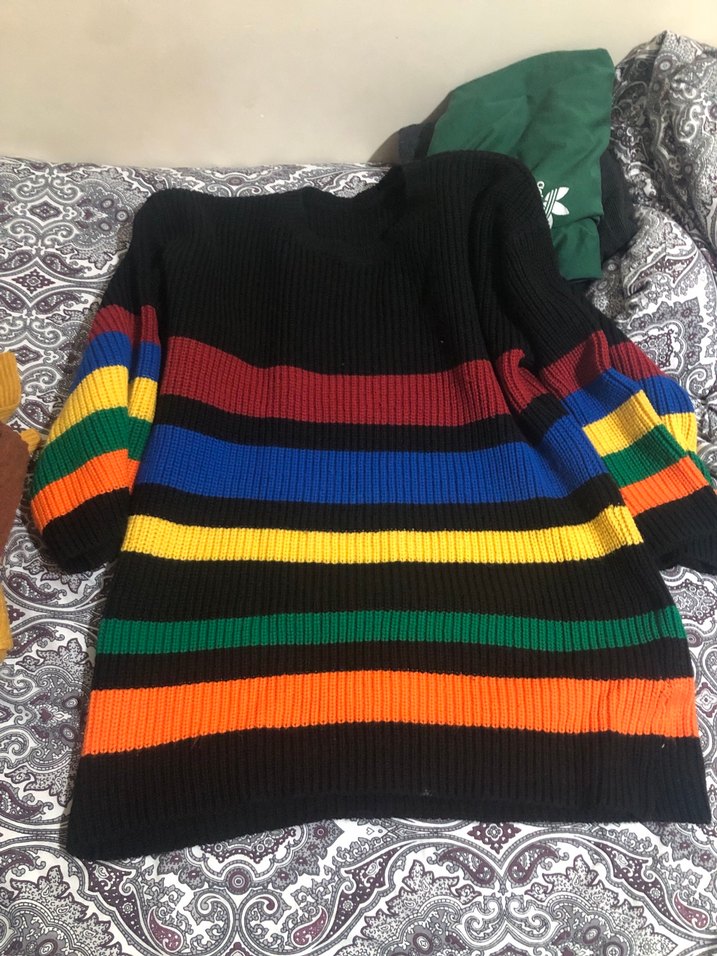Renkli Çizgili Örgü Kadın Kazak