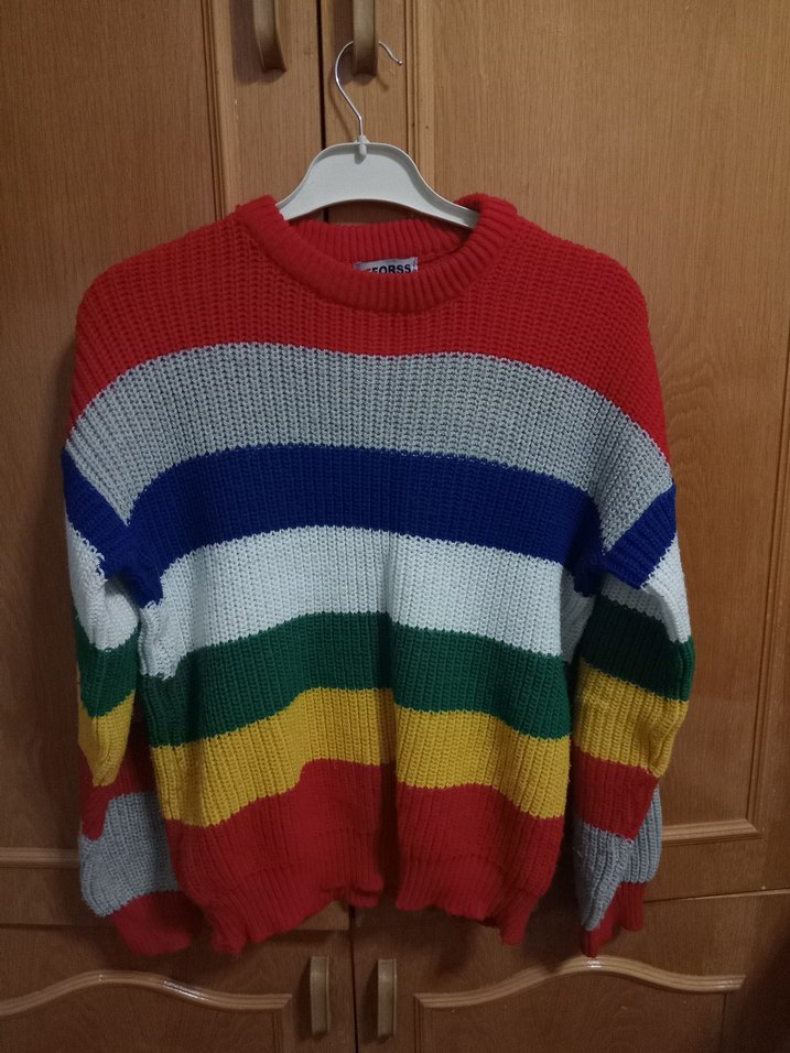 Renkli Çizgili Örgü Kadın Kazak