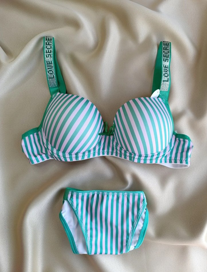 Renkli Çizgili Yeşil Sütyen ve Külot Takımı