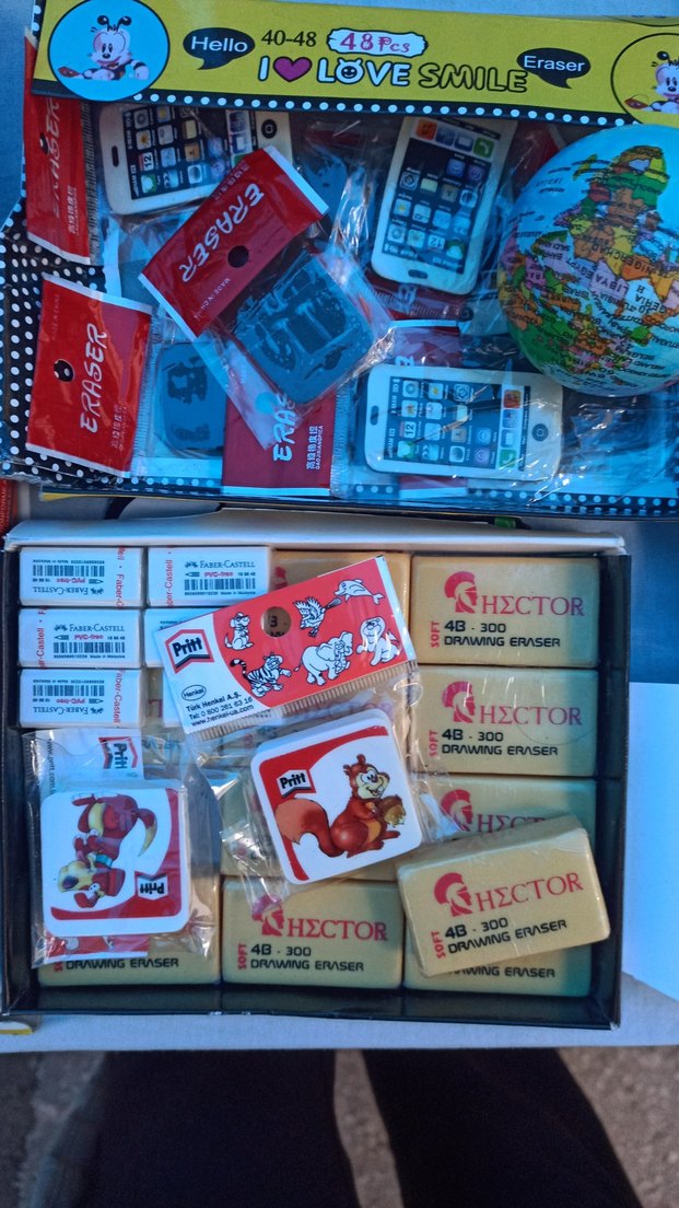 Chector markalı, çeşitli çizgi film desenli ve canlı kırmızı ambalajlı renkli çizim silgileri. Hassas silme için uygundur. ✏️